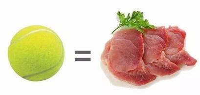 1、不超过1个“网球”的肉类:中年人一天吃肉不超过二两,青少年可以稍微多吃点,老年人要少于这个量。