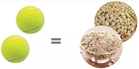 2、相当于2个“网球"的主食:吃两个“网球”的主食,最好是粗细结合。