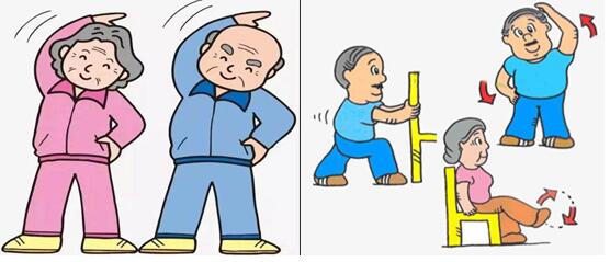 适当锻炼,不做剧烈运动,适合老年人的锻炼方法有太极拳、广播操、八段锦等。每次锻炼以30-40分钟为宜,每周4-5次,运动前做好充分的准备活动。体能较差的慢性病老年人可以进行短时间、多组间歇运动,组间有充分休息,以运动后感到微微出汗,稍感疲劳为宜。