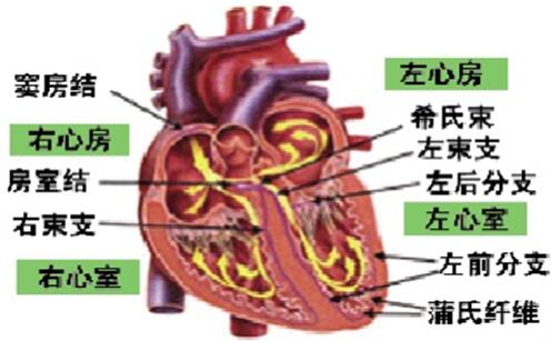 心脏的电路专业术语叫做心电传导系统,窦房结是发动机(又称人体自带的起搏器),电是通过结间束到达“中继站”房室结(如果发电机罢工,它可以临时发电)再通过希氏束继续下传到达左/右束支,在这套电路的指导下心脏进行收缩和舒张。但如果心脏的起搏和传导出了问题,可能发生心脏节律、频率或激动顺序的异常,可能出现心动过缓、窦性停搏或者心动过速、心律不齐等等。
