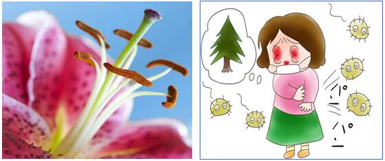春天各种花卉竞相开放,花粉细胞中多种高分子化合物是极强的过敏源。据统计,引起花粉过敏的植物最常见的有100多种,如榆树、杨树、柳树、梧桐、橡树以及某些果树,田间最多的则是油菜花, 研究表明,花粉颗粒越细小,引起的过敏程度越严重。