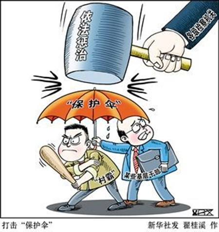 “保护伞”主要是指国家公职人员利用手中权力,参与涉黑涉恶违法犯罪,或包庇、纵容黑恶犯罪、有案不立、立案不查、查案不力,为黑恶势力违法犯罪提供便利条件,帮助黑恶势力逃避惩处等行为。