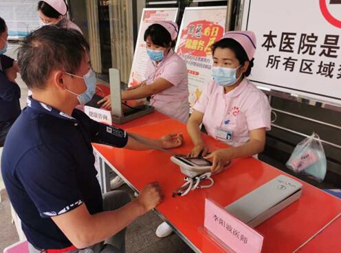 活动现场,医护人员设立咨询义诊台,为来往市民提供免费测量血压服务,并根据测出血压值提出健康指导,同时,对前来咨询的高血压患者、患者家属以及临界高血压人群答疑解惑,并向来往市民发放高血压宣传单及相关宣传资料,讲解高血压的一般常识、引起高血压的原因、高血压的危害及高血压防治等相关知识。