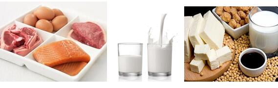 蛋白质广泛存在于动植物性的食物中,其中水产类、畜禽肉类、蛋类、乳类等动物性食物中所含的蛋白质为动物性蛋白;谷薯类、豆类及制品、蔬菜水果类及坚果等植物性食物中的蛋白质即为植物性蛋白。动物蛋白不低于蛋白质总量的33%,同时补充一定量豆类蛋白。多选用大豆、鱼、禽、瘦肉等优质蛋白。中国居民膳食指南(2016)推荐成人每天平均摄入水产类40-75克,畜禽肉40-75克,蛋类40-50克,平均每天摄入鱼、禽、蛋和瘦肉总量120-200克。
