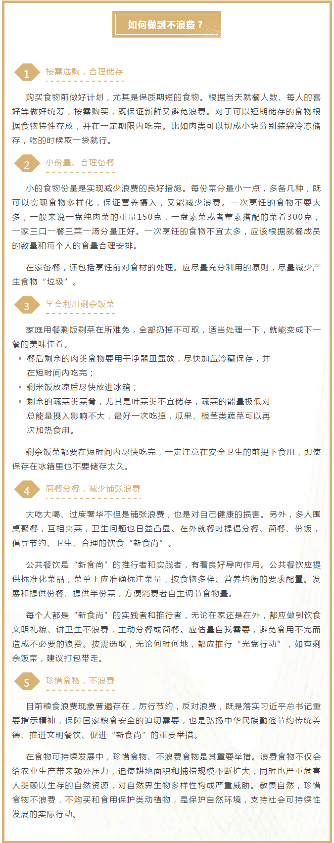 中共中央总书记、国家主席、中央军委主席习近平近日对制止餐饮浪费行为作出重要指示。他指出,餐饮浪费现象,触目惊心、令人痛心!“谁知盘中餐,粒粒皆辛苦。”尽管我国粮食生产连年丰收,对粮食安全还是始终要有危机意识,今年全球新冠肺炎疫情所带来的影响更是给我们敲响了警钟。