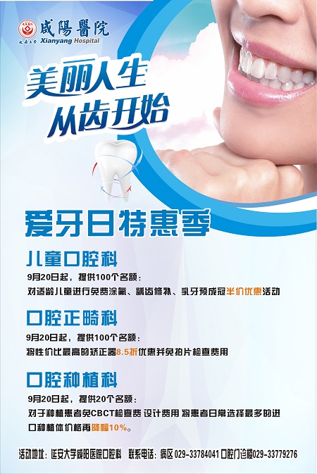 在第32个全国爱牙日来临之际,我院口腔科特推出“爱牙日特惠活动”,为您解决口腔难题!