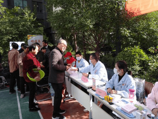 义诊现场,各个科室们的医生们耐心细致地为老人们量血压、测心率,答疑解惑,耐心指导,针对每个居民的不同情况,医生耐心地叮嘱他们各种日常注意事项,详细介绍防病和养生知识,提出合理的膳食、运动等生活指导,做到“未病先防”、“既病防变”、“预后防复”。