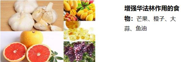 降低华法林作用食物:菠菜、茶叶、卷心菜、芦笋、西芹、西兰花、韭菜、大白菜、胡萝卜、西红柿、土豆、动物肝脏等,富含维生素K的食物,以上食物维生素K含量高,如食用过量增加维生素K的摄入,降低华法林的抗凝作用,降低INR。