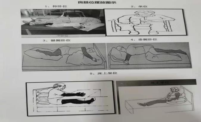 1.肢体偏瘫 除了继续按照护士提供的良肢位摆放图执行外,家属还需协助做被动运动,被动按摩,即取仰卧位,由上到下、先健侧后后患侧做各关节,各方向无痛范围的轻柔被动活动和按摩。手法缓慢,有节奏,力度轻柔,一个动作3-5秒。当患者能独立完成床上的主动运动后,进行坐位平衡和站立平衡训练,有条件的家庭可以装上护栏,使用防滑地毯,防滑鞋。同时做日常生活训练,如梳头,系扣,解带,进餐,清洁等。