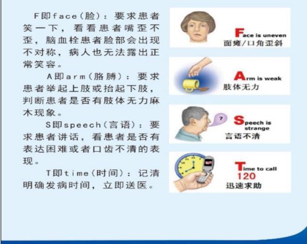 以上是我为大家整理的脑血管病人居家护理要点。下面为大家附上快速识别脑卒中的方法,如发现有图中的症状,立即就诊。春节期间延安大学咸阳医院神经内科贵宾二病区24小时免费接诊电话3378 6067。最后祝您春节快乐,身体健康!