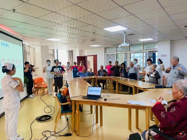 同时,还为老人们精心准备了“预防卒中保健操”,在刘敏护士长的带领下,老人们在肢体的伸展与屈曲之间,老人们感受到了来自白衣天使温暖的关怀。
