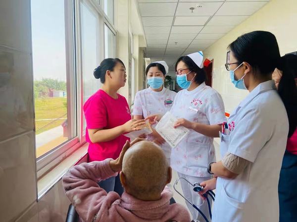 我院王长宁总护士长及路娟医师带领一行人员实地走进老人们的房间进行查房、查体,为伤残老人进行日常用药与康复功能锻炼指导,并发放随身携带的健康教育宣传册。