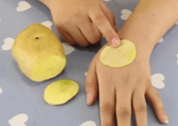 (2)将新鲜土豆片清洗干净,切成2~3mm厚的薄片涂于患处。最好是土豆片与皮肤充分接触,不要有悬空,必要时可用保鲜膜轻轻固定。每1~2h更换土豆片1次,确保土豆片的汁液持续的渗透于组织中。每次更换前,注意观察局部皮肤变化,间隔30min再进行下一次外敷。