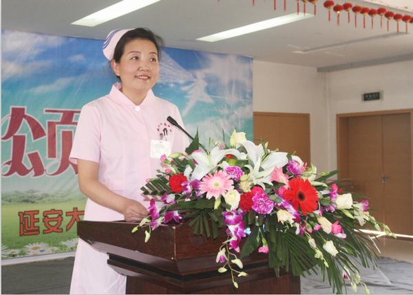 首先护理部徐京华主任致辞,表达了对广大护士节日的祝福,希望通过表彰、奖励先进,激励和带动全院护理人员学习先进、赶超先进和全心全意为患者服务的工作热情,促进护理工作再上新台阶。对护理工作做一阶段总结,在践行“优质护理服务示范工程”活动过程中,在医院领导的大力支持下,围绕今年工作重点,全院护士积极努力,采取有效措施使得我院优质护理服务工作得以稳步发展,全院临床科室全部开展,今年新开病区也已递交申请书和开展计划方案。以病人为中心,深化专业内涵,责任护士全面负责,使病人感受到“这里的每名护士都关心您”。去年至今,病人点名表扬护士500余人,最多被点名表扬18次,收到表扬信330封。近几年我院护理工作成绩斐然,2次被评为陕西省优质护理示范工程“先进集体”荣誉称号;每年被评为咸阳市先进集体;今年我院又被评为咸阳市“2014年度优质护理服务先进单位”;心血管内五科病区被评为咸阳市“2014年度优质护理服务先进病区”;邢娟护士长、周莉护士被评为咸阳市“2014年度优质护理服务优秀护士”。