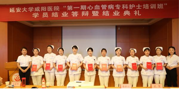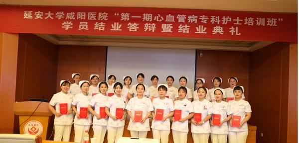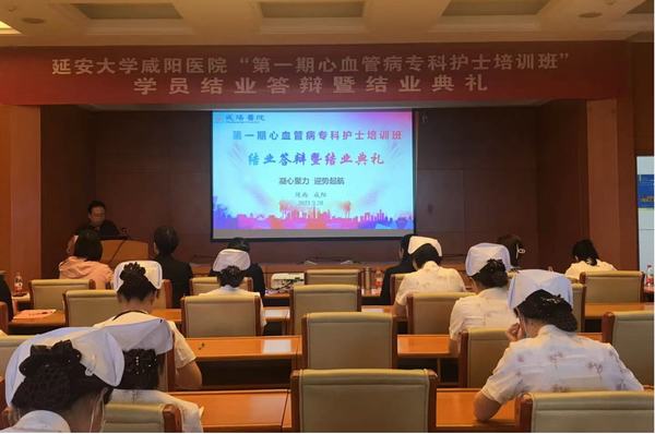 宝剑锋从磨砺出,梅花香自苦寒来。积土而为山,积水而为海。为促进医院心血管专科护理全面、协调、可持续发展,提高心血管护理专业技术水平,促进专科护理工作发展,2021年8月4日-9月28日,延安大学咸阳医院心血管病院在院领导的大力支持下,举办了“第一期心血管病专科护士培训班”。经过26课时的理论学习、12课时的操作培训、为期两周(20课时)的CCU轮转、理论考核、多站点式操作考核、护理病例汇报,近2个月的学习,24名学员完成了所有的学习任务,以优异的成绩为自己交了一份满意的答卷。2021年9月28日心血管专科护士培训班在心脏楼第一学术厅隆重举办了结业答辩暨结业典礼。本次结业典礼由姚冲护士长主持,莅临现场的领导有:吴栋梁院长、左梅主任、李阳主任、王显利主任,王芝荣主任,党文婷总护士长、心血管病院各科护士长。