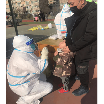 我们奉命采集地在咸阳市。20天来,我们辗转于这里大大小小的居民小区。我和我的战友们创下了用2个小时完成超过万人核酸采集的记录。为了减少民众等待时间,我们吃饭时间不固定,尽量不喝水,避免上厕所,我们笑称自己是“铁人”,24小时待命,无论何时接到通知,大家都能立刻收拾好随身器械,快速出发。在20多个连续奋战的日日夜夜里,我们感受过凌晨街道的寂静,望见过深夜当空的圆月,看到过凛冽寒风中瑟瑟发抖的身躯,但听不到半点怨言,萦绕们耳边是互相加油鼓劲的声音。