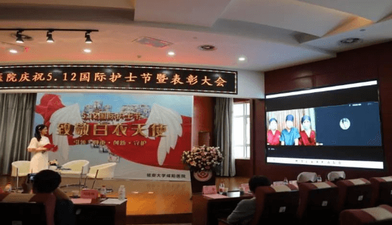 2022年5月10日下午,延安大学咸阳医院举办了以“引领·尊重·创新·守护”为主题的第111个国际护士节庆祝活动暨表彰大会。因疫情防控要求,此次活动采用线上线下结合的方式进行。精诚医疗集团李卫军主席、延安大学咸阳医院张海涛院长、科研教学管理中心韩晓芳主任、工会沙宁主席、高霁副总会计师、刘连峰院长助理、外科病院姚春和副院长、内科病院张维副院长、亓梅调研员出席活动。各职能部门领导、全院部分护士长、优秀护士代表参会。