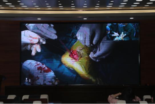 手术示教结束后:李鹏责任总医师结合高清手术直播给大家讲解跟骨的解剖及相关手术技巧,又进一次手术过程的串讲,在理论和实操结合的基础上,进行跟骨相关知识的巩固,使学生加深理解,更高效地掌握医学知识,并进行疑难问题的解答与现场学员互动,培训现场反响热烈,纷纷表示受益颇多。