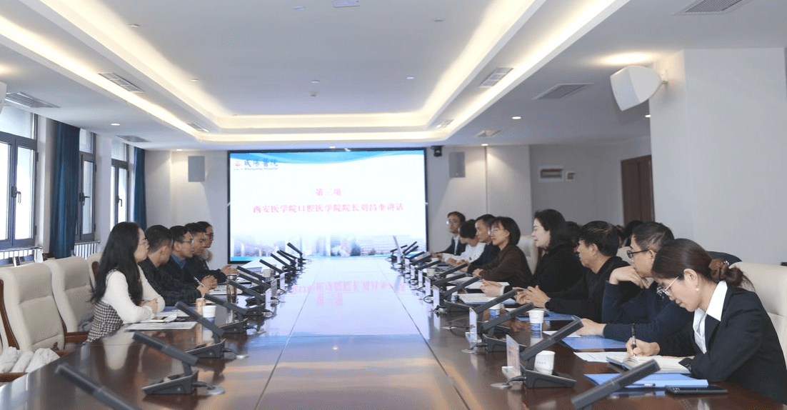 西安医学院口腔医学院刘昌奎院长从招生规模、生源质量、培养水平、师资力量、科研能力等方面介绍了口腔医学院的情况,并对我院教学工作的开展给予了高度赞扬,就双方今后为培养医学人才、学科建设、医疗资源互补等方面进行深度交流,深信通过优势互补、资源共享机制,培养和输送更多口腔医学人才而不断努力。