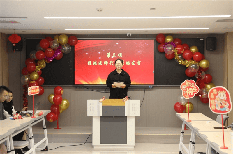 延安大学咸阳医院韩晓芳调研员对全体住院医师作新年寄语,希望大家在新的一年,龙行龘龘,学业有成,福暖四季,万事如意。