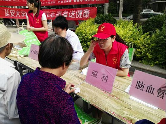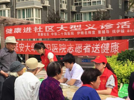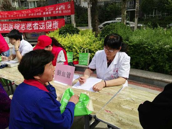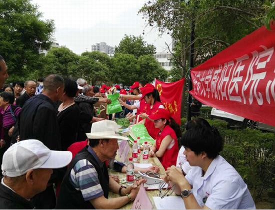 为了提高社区居民的健康知识水平,增强居民的健康保护意识,让社区居民们在自家门前就能享受到免费医疗保健服务。5月5日至5月6日,延安大学咸阳医院的医疗专家及志愿者们在芙蓉小区、西兰街道办、滨河社区、新兴街办凤凰广场开展了送健康进社区大型义诊活动。向社区居民进行健康保健知识的宣传,同时义务为居民进行健康体检和健康咨询。