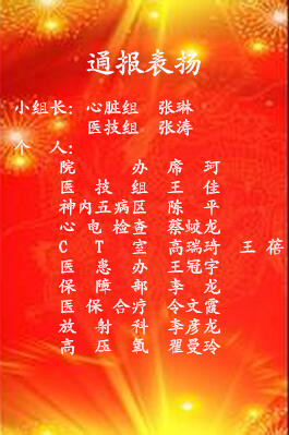 表扬:心八科:吴 朝 保障部:王 晶 卢光涛