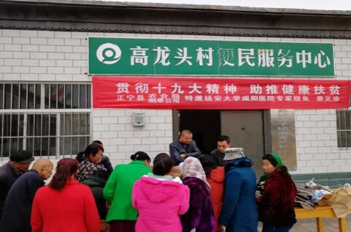 为贯彻党的十九大精神,改善贫困户健康状况,为进一步做好健康扶贫工作,切实解决因病致贫、因病返贫问题,让人民群众真正感受到健康扶贫优惠政策带来的实惠,按照沙宁院长助理指示,2017年11月10日,由延安大学咸阳医院社区服务科马登科科长组织在甘肃正宁县榆林子镇高龙头村村部举行大型义诊活动。