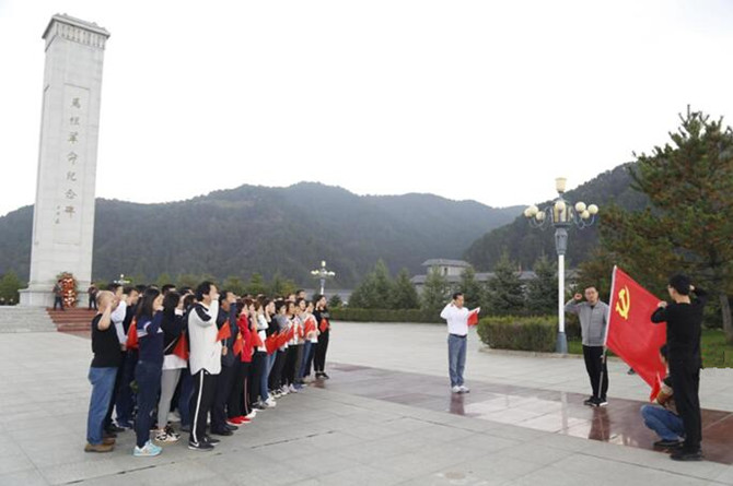 马兰革命纪念碑屹立于广场中央,雄伟壮阔,直入云霄,是纪念和缅怀老一辈革命先烈们的丰碑。为增强“不忘初心、牢记使命”主题教育效果,全体党员站立在马栏革命纪念碑下,面对党旗,举行了庄严的宣誓仪式,重温了入党誓词,承诺“为共产主义奋斗终身”。宣誓仪式后,各党支部也纷纷组织党员合影留念,高喊祖国万岁,共产党万岁,博大的爱国、爱党情怀被表达的淋漓尽致。