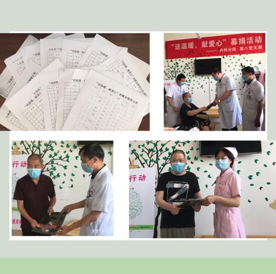 为充分发挥党员先锋模范带头、示范辐射作用,展示良好的党员形象,提升党支部的创造力、凝聚力和战斗力,6月3日下午由内科综合办、第八党支部牵头在我院精神科进行“送温暖、献爱心”捐赠衣物活动,院党委办公室耿月同志、内科病院全体护士长、第八党支部全体党员及患者代表共30余人参加了本次活动。