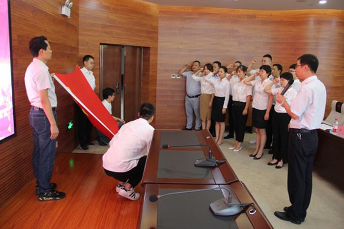 首先,由沙宁同志带领新发展党员进行入党宣誓:我志愿加入中国共产党,拥护党的纲领,遵守党的章程,履行党员义务,执行党的决定,严守党的纪律,保守党的秘密,对党忠诚,积极工作,为共产主义奋斗终身,随时准备为党和人民牺牲一切,永不叛党。激情澎湃的宣誓,表达了全体党员牢记使命,不忘初心,永远跟党走,为党的事业奋斗终身的信心和决心。