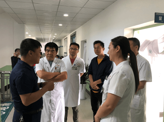 此次义诊活动由延安大学咸阳医院宣传部部长赵莉带队,乾县区域负责科长槐欣国配合。抵达乾县阳峪中心卫生院后,受到卫生院领导的热烈欢迎,卫生院王战厂院长亲自带领义诊专家组参观卫生院的院内环境,热情讲解医院的设施建设,双方就医院建设进行深入交流。我院心血管内科七病区高胜利主任及消化内科一病区郑百战医生为卫生院医生指导解决疑难病例,对住院患者进行查房会诊。