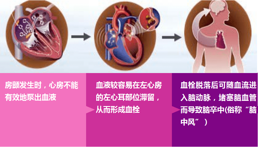 房颤患者每年脑卒中发生率约5%,20%的脑卒中是由房颤所导致,房颤患者卒中风险是正常人的5倍。