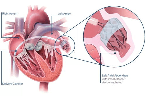 2.左心耳封堵术:对于不能口服或不愿意长期服用抗凝药的栓塞高危房颤患者,左心耳封堵术是不错的选择,可以说是“一劳永逸”,但需要专科医生评价才能进行的。