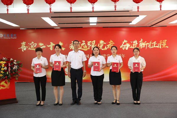 党委书记姚晓峰同志在讲话中简要回顾了建党101年和建院73年以来的发展成果,总结了过去一年医院党建工作的成绩,并就未来党建工作提出了希望和要求。党委书记姚晓峰同志号召全院党员干部不忘初心、牢记使命,充分发挥党组织战斗堡垒作用和党员先锋模范作用,转变工作作风,强化担当意识,真抓实干,开拓创新,奋发进取,为我院高质量发展注入强大的红色动力!他强调,今年是党的二十大召开之年,也是医院实施“十四五”规划的关键之年,全院干部职工要紧紧围绕集团公司下达的目标任务和医院中心工作,以建设高水平的三级甲等综合医院为目标,众志成城,砥砺奋进,以实际行动和优异成绩迎接党的二十大胜利召开!