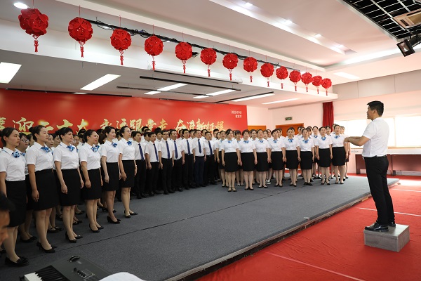 最后,由124名职工组成的合唱团演唱了精诚医疗集团医院院歌《心愿》《铁道兵志在四方》《再唱山歌给党听》三首曲目,为建党101周年献礼!