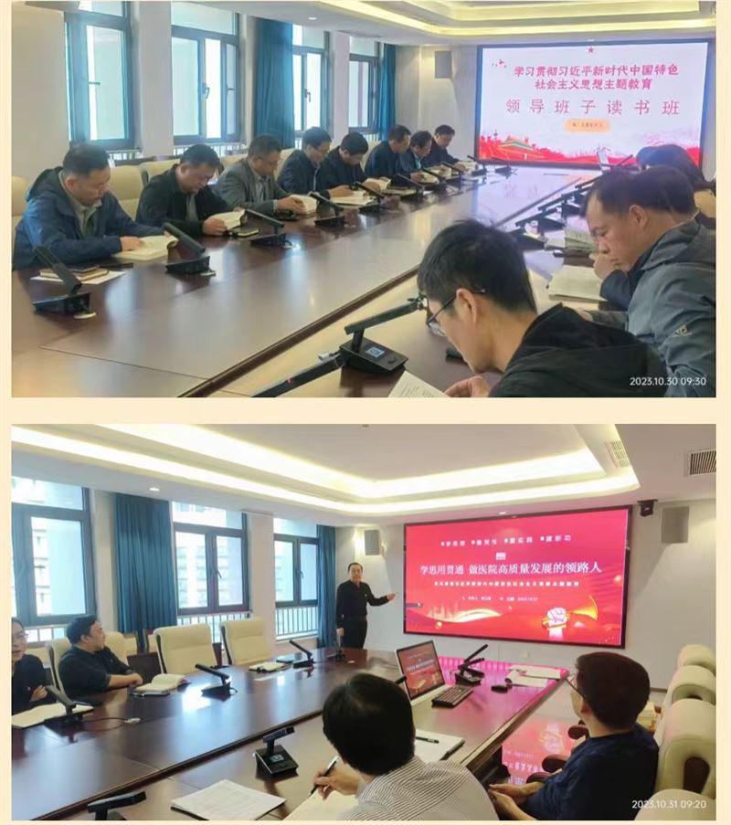 领导班子带头认真研读了党的二十大报告和党章,按照要求开展了集中学习,为主题教育扎实开展和取得成效奠定了坚实的基础。班子成员通过个人自学、集体研学、重点领学、一线调研等多种方式开展了系统全面学习。其中,重点研学讨论了与医院发展紧密相关的《打造忠诚干净担当的高素质干部队伍》《积极培育和践行社会主义核心价值观》《不断增强人民群众获得感幸福感安全感》《正确把握推进健康中国建设的重大问题》等重要论述。通过原原本本学原著,结合工作谈体会,感悟思想伟力,检视差距不足,明确发展路径,凝聚奋进力量。