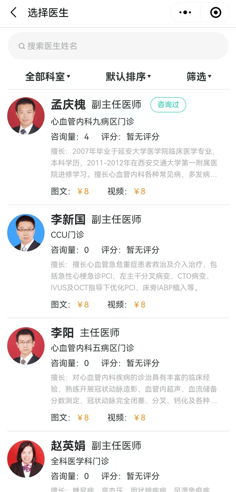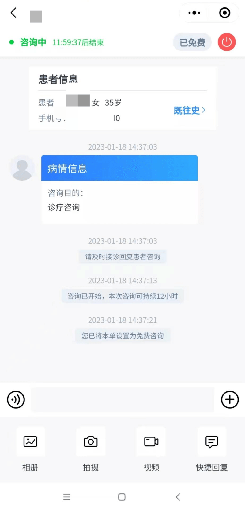可进行病情咨询、报告解析、用药建议、诊后指导等诊疗服务,以图文和视频两种方式进行咨询交流。