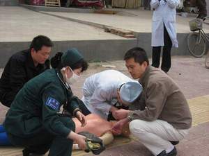 根据2009年年初医院办公会关于加强院前急救管理的精神,为加强医务人员急诊急救意识,提高处理突发性公共卫生事件的能力,通过几月的理论学习和实践操作训练,3月20日上午由我院袁副院长亲自督查,医教部、护理部组织,开展了一次突击性院前急诊急救大演练。