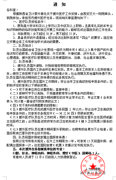 延安大学咸阳医院关于选派医护骨干赴海外研修的通知
