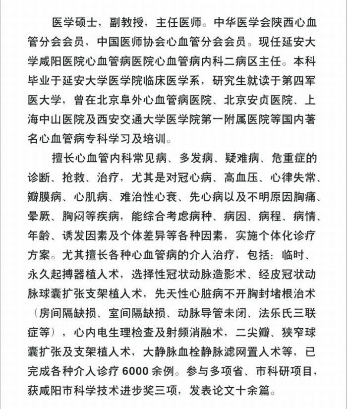 咸阳医院心血管病医院 心脏内科专家团队 连载