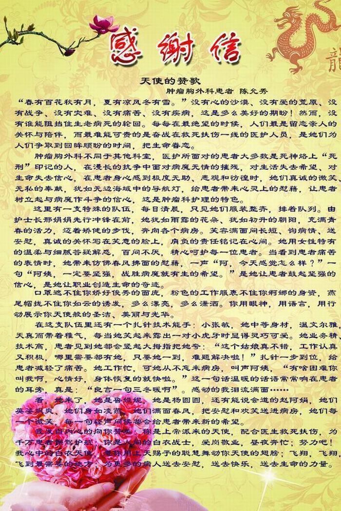 肿瘤胸外科一位患者的感谢信——天使赞歌