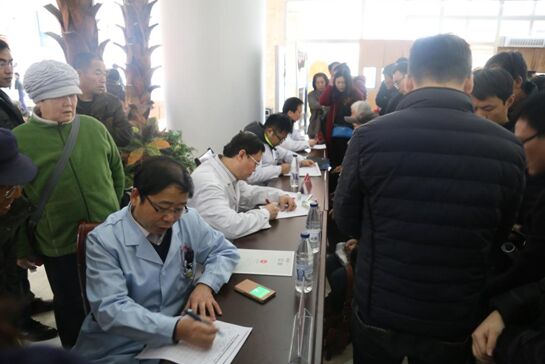 学术交流完毕后,在我院脑科楼门诊大厅,张海涛副院长、刘永宏副院长、王学廉教授和他的团队李楠博士、李嘉明博士、荆江鹏博士等为早早等候的帕金森病患者进行义诊。针对患者们的病情与问题,专家们都给予了细致的检查和详实的解答。