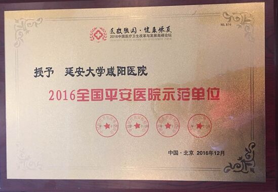 2016年12月21日,“榜样中国2016中国医疗卫生改革与发展高峰论坛暨2016中国医疗卫生事业颁奖盛典”在北京盛大开幕。我院康彦文院长应邀参加了本次盛会并被评为“2016全国医院管理优秀院长”,我院被评为“2016全国平安医院示范单位”荣誉称号。“榜样中国2016中国医疗卫生改革与发展高峰论坛暨2016中国医疗卫生事业颁奖盛典”是为了进一步贯彻落实医疗卫生行业十三五规划发展要求,深入学习习近平总书记在全国卫生与健康大会上的重要讲话精神,实现政府决策机构与医疗卫生服务单位间的高效协同、医疗卫生资源优化配置,进一步落实“健康中国”战略的具体实施工作召开的,本论坛由中国医疗卫生改革委员会、中国医疗质量检验中心等多家单位联合主办。