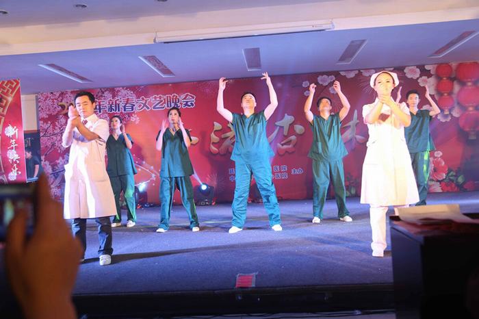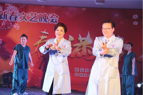 延安大学咸阳医院院领导一直重视手卫生的宣传及督导落实并以身作则,从自身做起,支持参与到手卫生宣传中来。1月20日,手卫生舞蹈情景剧走上2017年我院春节联欢晚会的舞台。康彦文院长亲自领舞,院感办、外科系统医护人员共同参与的生动新颖、寓教于乐的节目表现形式,将晚会气氛推向高潮。康院长在晚会现场倡议所有参会嘉宾行动起来,严格执行手卫生,最后,全场观众群起呼应高呼手卫生口诀:内、外、夹、弓、大、立、腕。