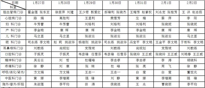 春节放假期间我院各科日间门诊均有值班医生照常接诊
