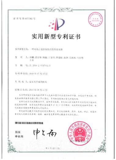 近日,从中华人民共和国国家知识产权局传来喜讯,我院老年病科护士长治娜同志申报的“一种可防止皮肤损伤的男性接尿器”依照“中华人民共和国专利法”成功获批为国家实用新型专利!