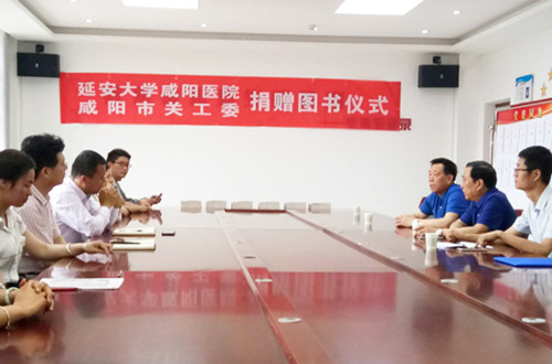在“六一”儿童节到来之际,延安大学咸阳医院联合咸阳市关心下一代委员会为渭城区文林学校送上了节日的礼物和问候。延安大学咸阳医院董事长兼党委书记李卫军、咸阳市关工委秘书长姚安柱、文林学校校长仇鹏出席了捐赠图书仪式,市关工委、延安大学咸阳医院相关人员及文林学校部分老师二十余人参加。