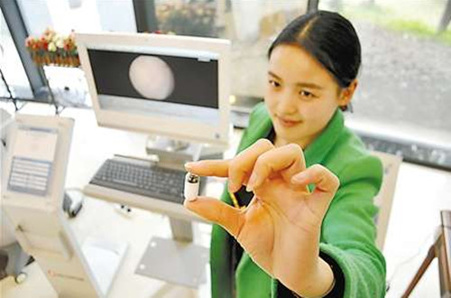 什么是胶囊内镜检查?我院消化内科李恒主任说:“胶囊内镜是一种无线内镜技术,主要由一个微型照相机、数字处理系统、无线收发系统等三部分组成。从入口腔的那一刻起,胶囊胃镜会以每秒2张的速度拍照,在消化道的蠕动下历经整个消化过程,一路走一路拍,图像实时传送至记录仪。6至8小时后,胶囊电池用尽,随大便排出体外,此时,它已收集齐食道、胃、小肠等器官的内部情况”。