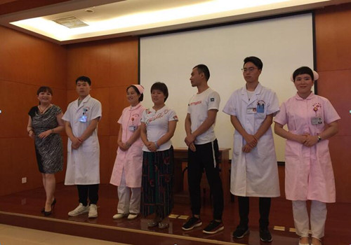 精神科自导自演的情景剧“爱的烦恼”将此次活动推向高潮,展现了一名女性患者由于疾病和家庭因素,出现情绪波动,从住院期间对护士百般“刁难”,责任护士通过关心与陪伴、真诚的沟通,耐心的解释,到最终消除患者的不安全感,与护士建立良好护患关系,共同战胜疾病后向护士表示感谢并道别的一幕幕场景,呈现出护患一家人的和谐大家庭,故事真实感人,更折射出临床工作护患沟通的重要性。