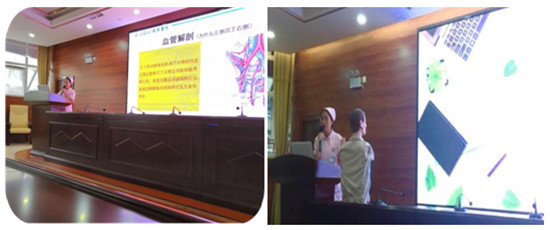 总护士长及主持人简短宣布了比赛规则后,参赛者根据抽签顺序依次上台,通过PPT形式进行授课。有着重使用图片讲解的;有临床实例加视频播放,再结合案例分析的;还有设置场景与学生互动问答的等等。参赛选手授课方式多种多样,四个小时的时间里,选手们绘声绘色,精彩纷呈的讲解赢得了评委们的诸多赞许。